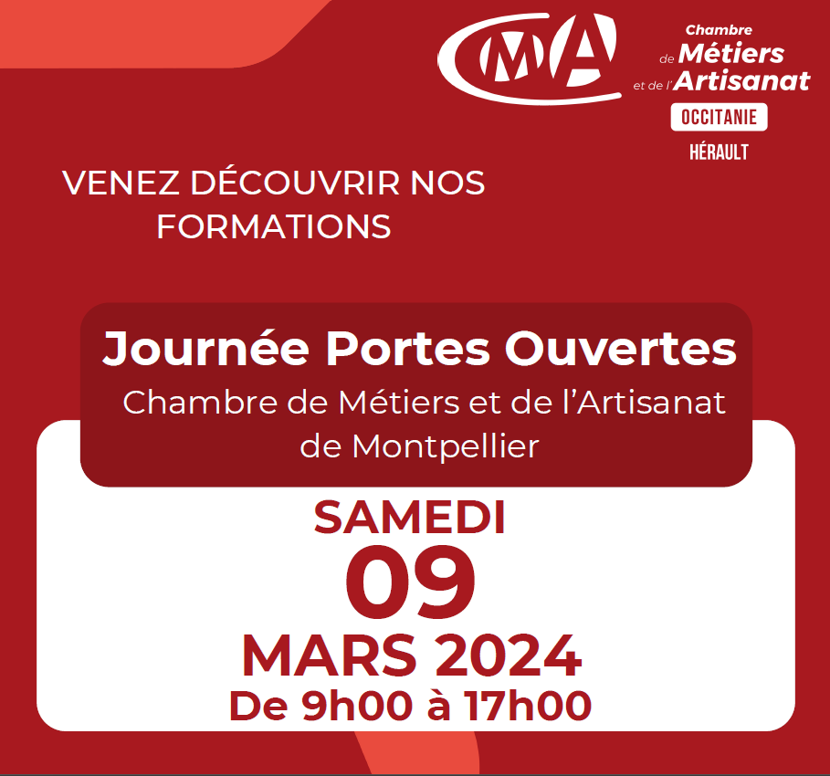 Le CFA de la chambre de métiers et de l’artisanat de Montpellier ouvre ses portes samedi 9 mars de 9h00 à 17h00.
