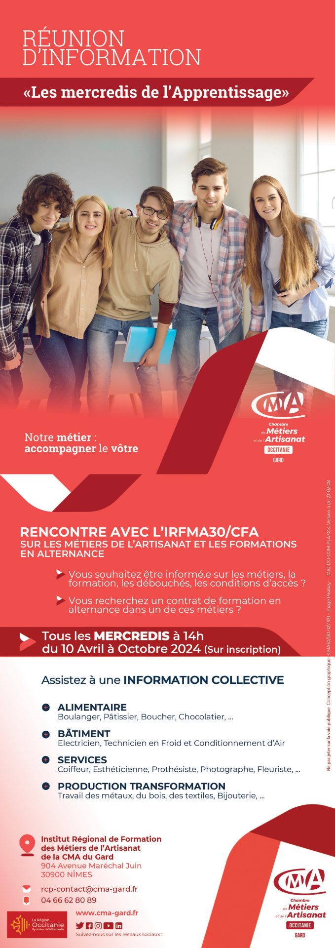 Sur inscription uniquement (rcp-contact@cma-gard.fr 04 66 62 80 89)