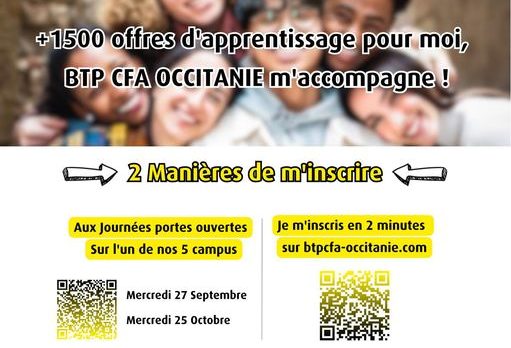 Participez à la Journée Portes Ouvertes 27 Septembre 2023 du BTP CFA OCCITANIE